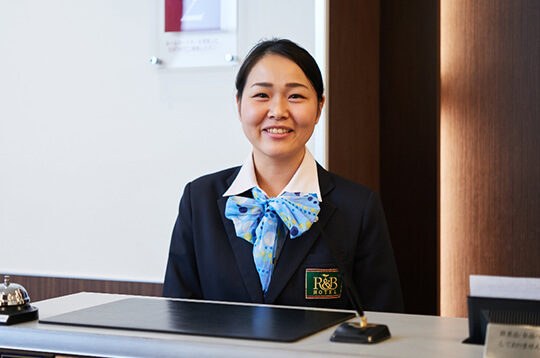 笑顔でお客様をお迎えし、チェックインやチェックアウト、